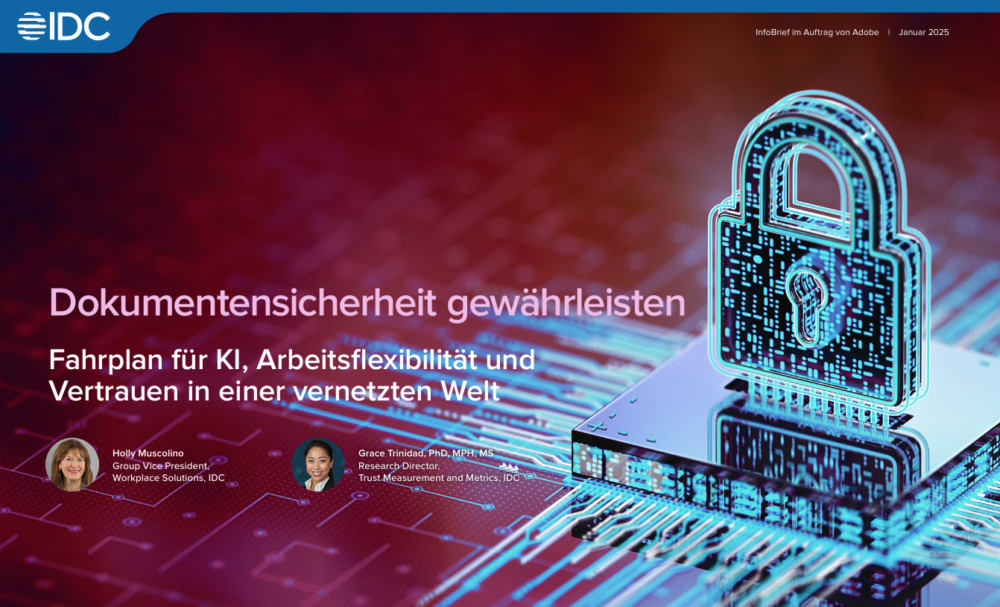 Back to Homepage Arbeitsflexibilität, generative KI und Dokumentensicherheit Präsentiert von Adobe Für CIOs ist Dokumentensicherheit…
